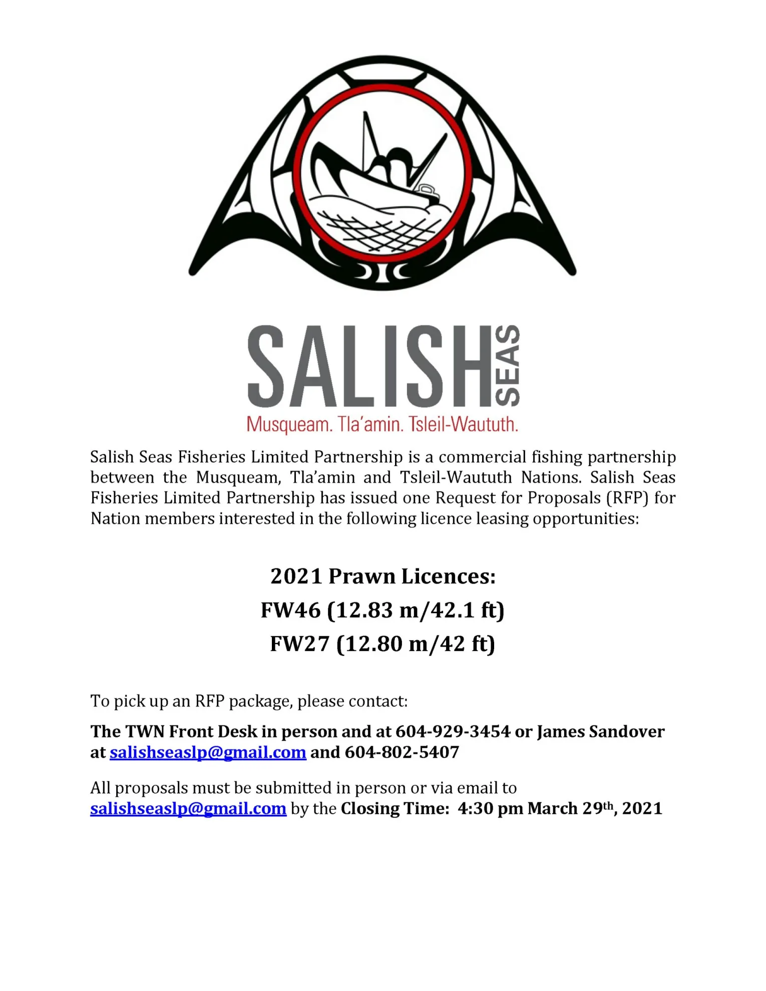 The TWN Front Desk in person and at 604-929-3454 or James Sandover at salishseaslp@gmail.com and 604-802-5407