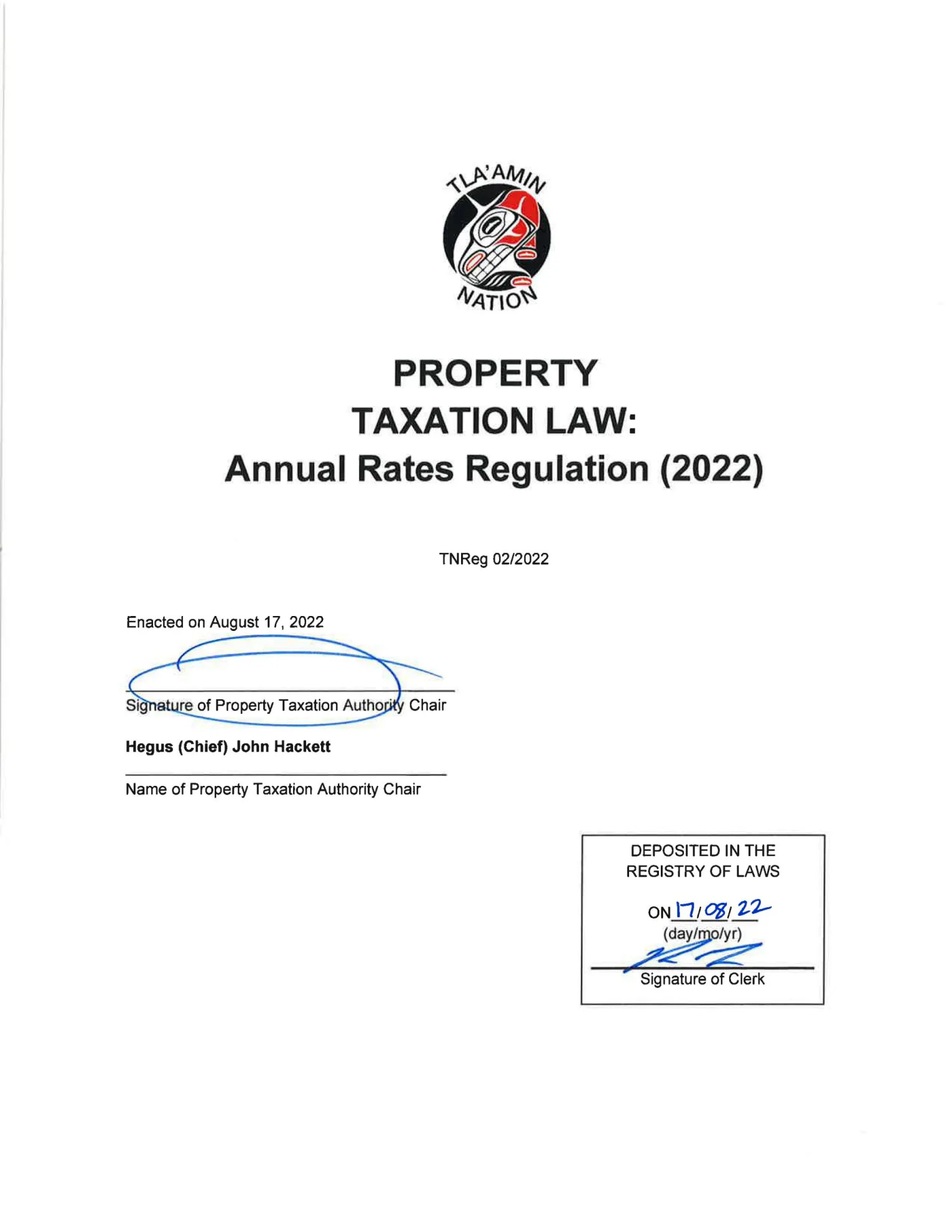 Please find attached the Annual Rates Regulation for 2022 Download PDF 2022-Annual-Rates-Regulation [PDF]