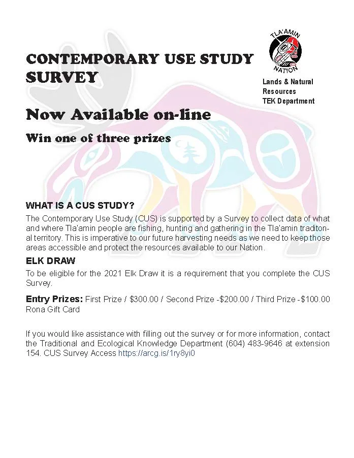the Traditional and Ecological Knowledge Department (604) 483-9646 at extension