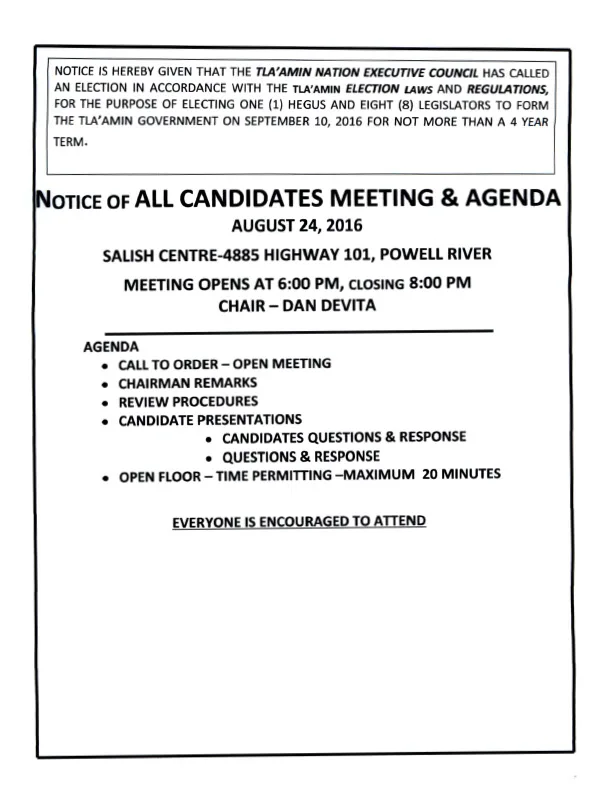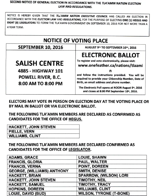 FIRST NOTICE OF ELECTION OF TLA’AMIN NATION GOVERNMENT