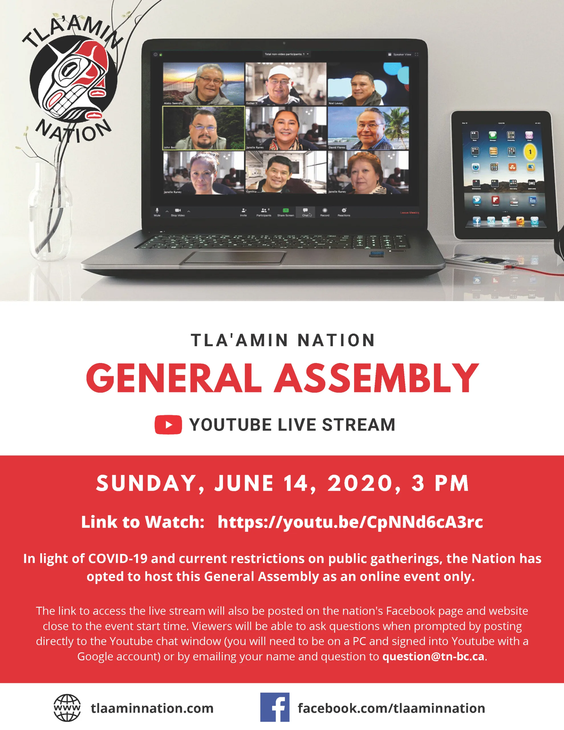 Due to current gathering restrictions as a result of the COVID-19 pandemic, the 2020 Spring General Assembly will be held via Zoom on June 14. Details on how to access the meeting virtually will be provided.