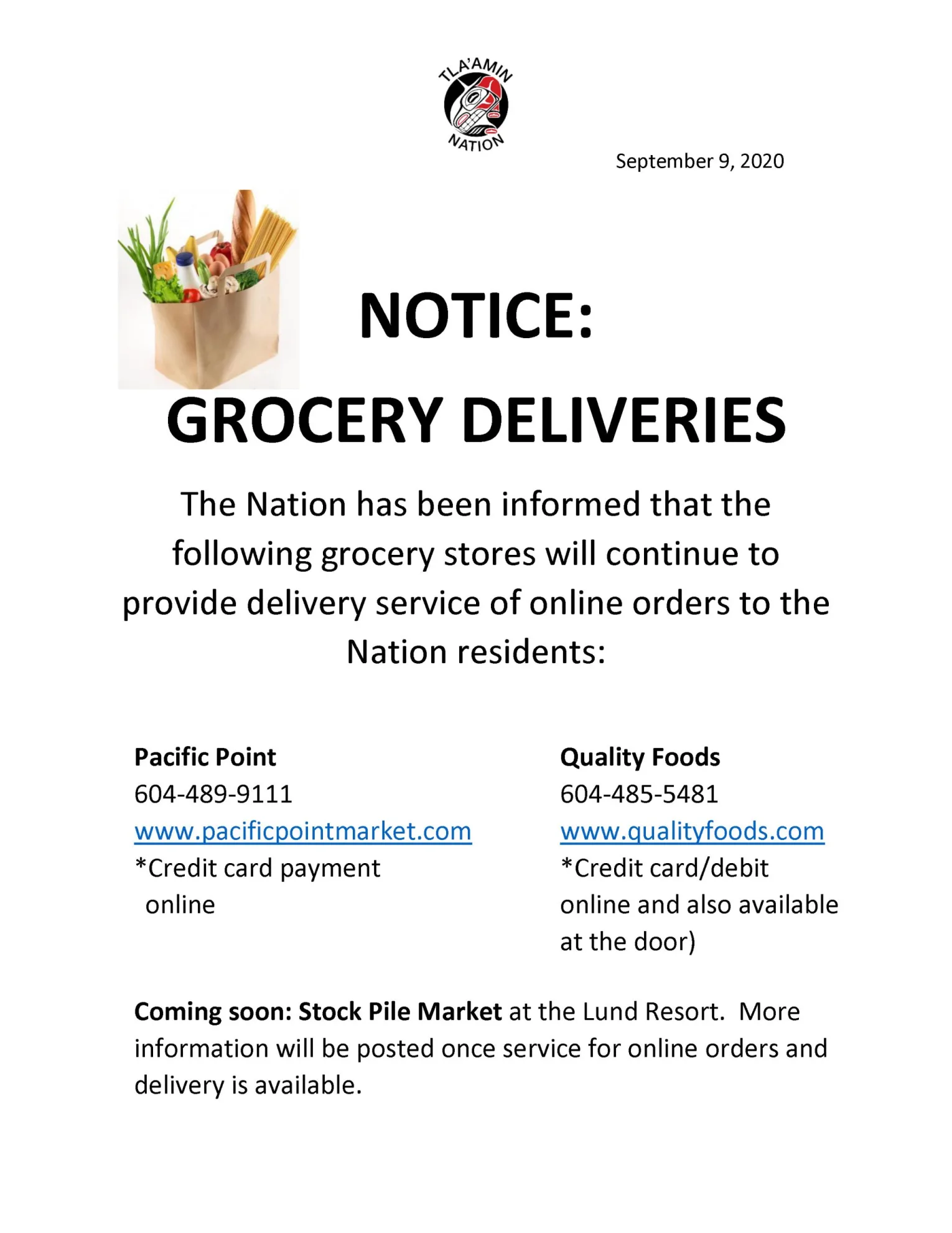 Coming soon: Stock Pile Market at the Lund Resort. More information will be posted once service for online orders and delivery is available.
