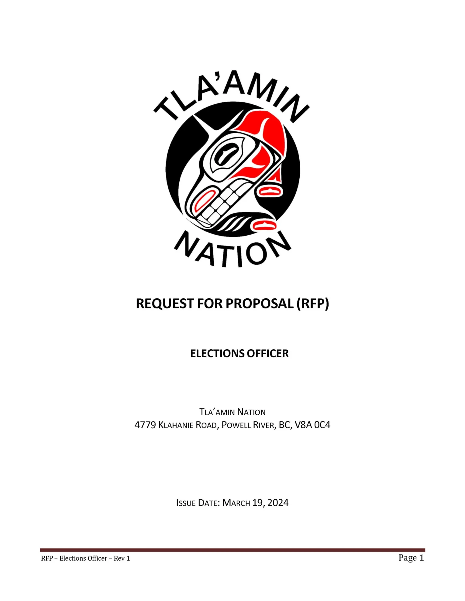 Tla’amin Nation (TN) requires the appointment of an Elections Officer for the upcoming 2024 Tla’amin Nation General Election. The date for the election will be on September 14th, 2024.