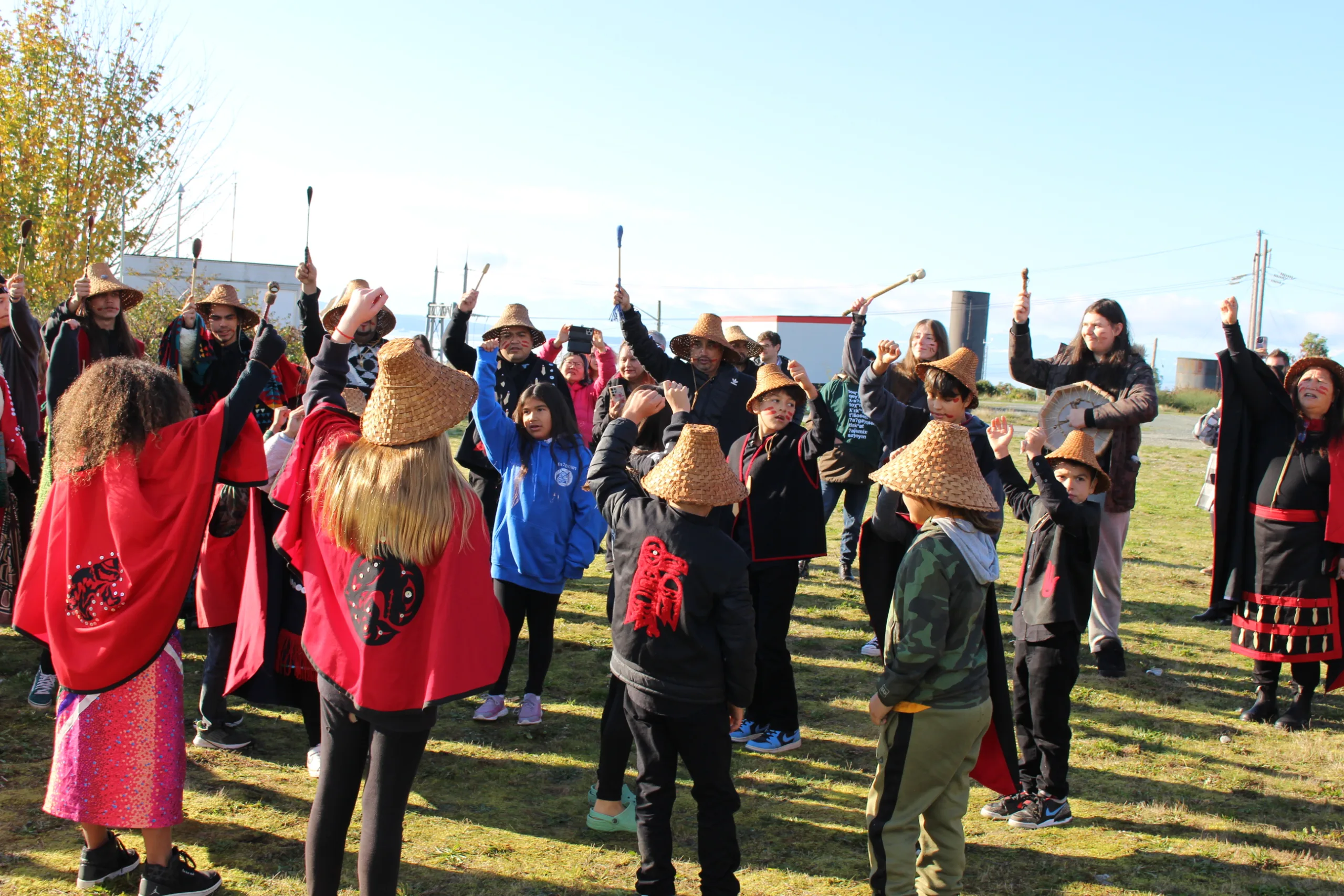 Drew Blaney and the drum family closed the event by leading Tla’amin kids in a newly composed Tla’amin honour song.