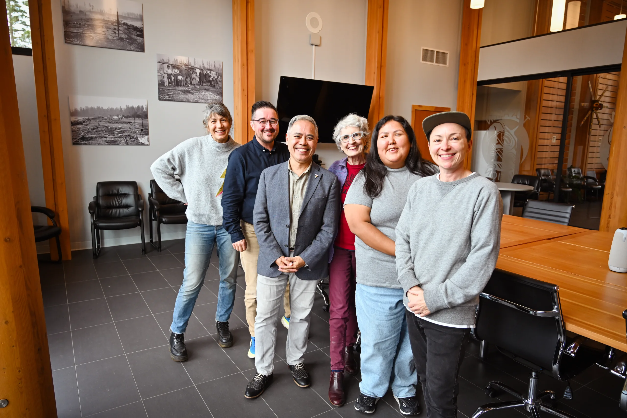 Tla’amin Namesake documentary film crew, from left: Claudia Medina, Davis McKenzie, Dr. Evan Adams, Peg Campbell, Eileen Francis, and Angela Kendall. Missing Emily White.