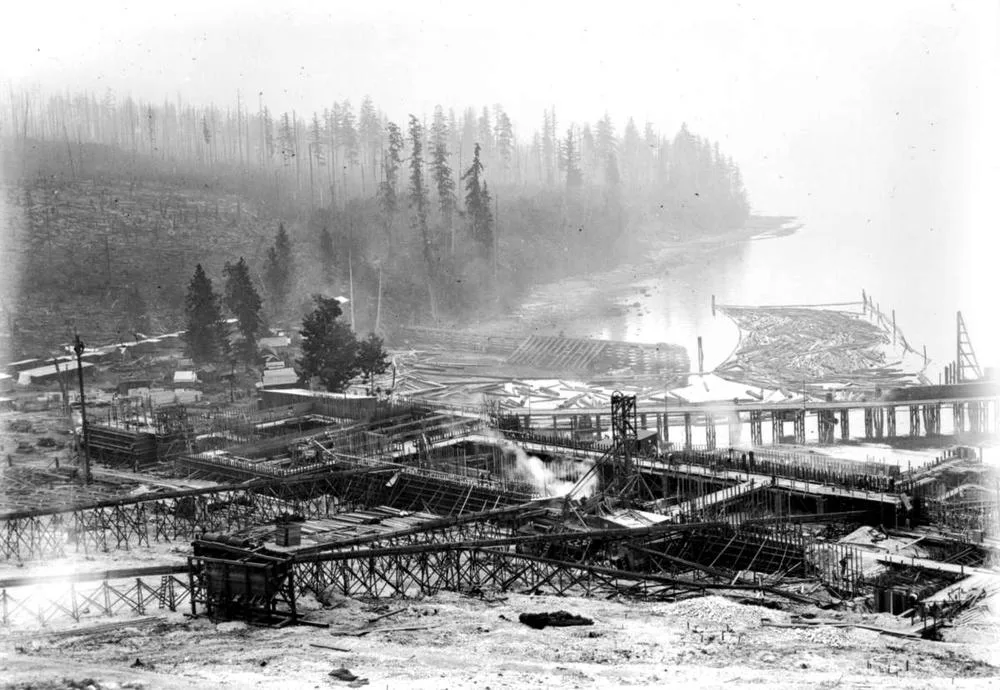 Foundations of the pulpmill at tiskʷat in 1910.