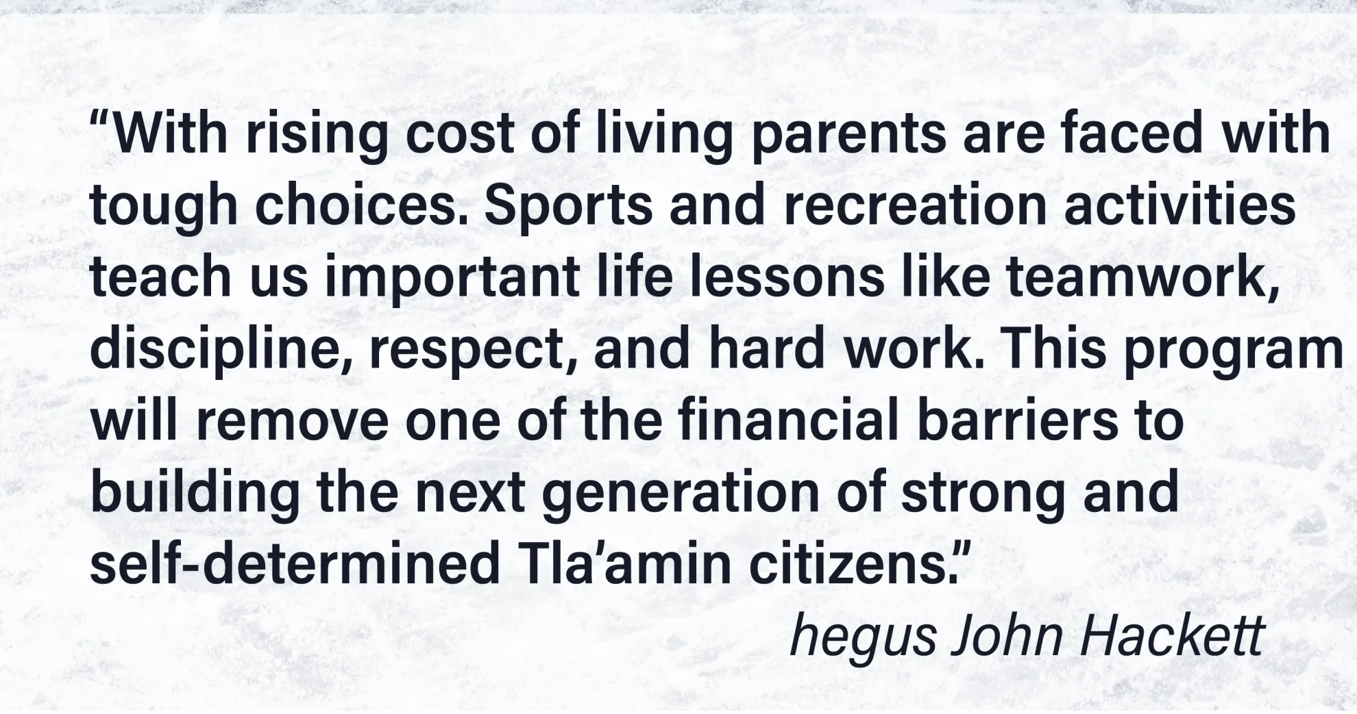 “With rising cost of living parents are faced with tough choices,” said Hegus John Hackett. “Sports and recreation activities teach us important life lessons like teamwork, discipline, respect, and hard work. This program will remove one of the financial barriers to building the next generation of strong and self-determined Tla’amin citizens.”