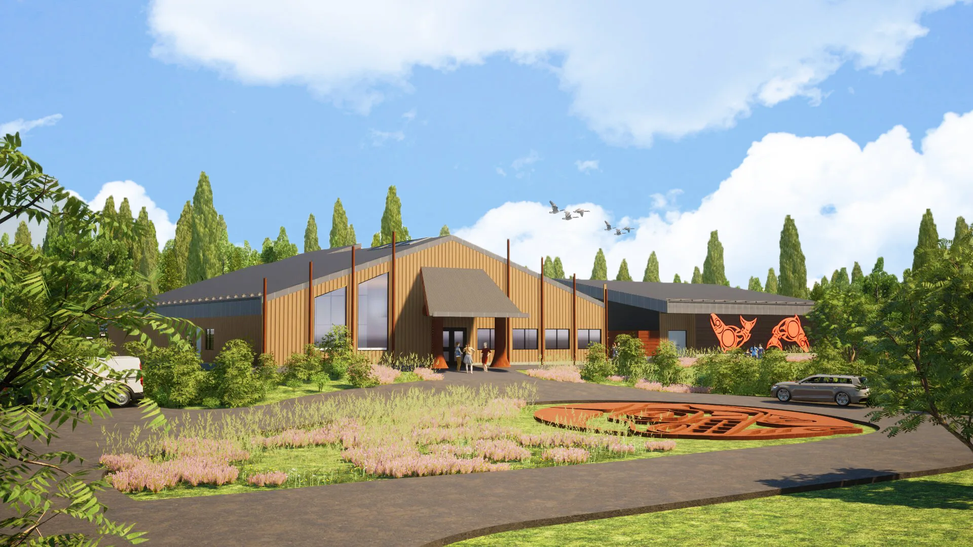 Both buildings will be community and wheelchair accessible. Gardens for medicinal plants, a smokehouse, and a carving shed on site will serve as a cultural hub for the Nation.