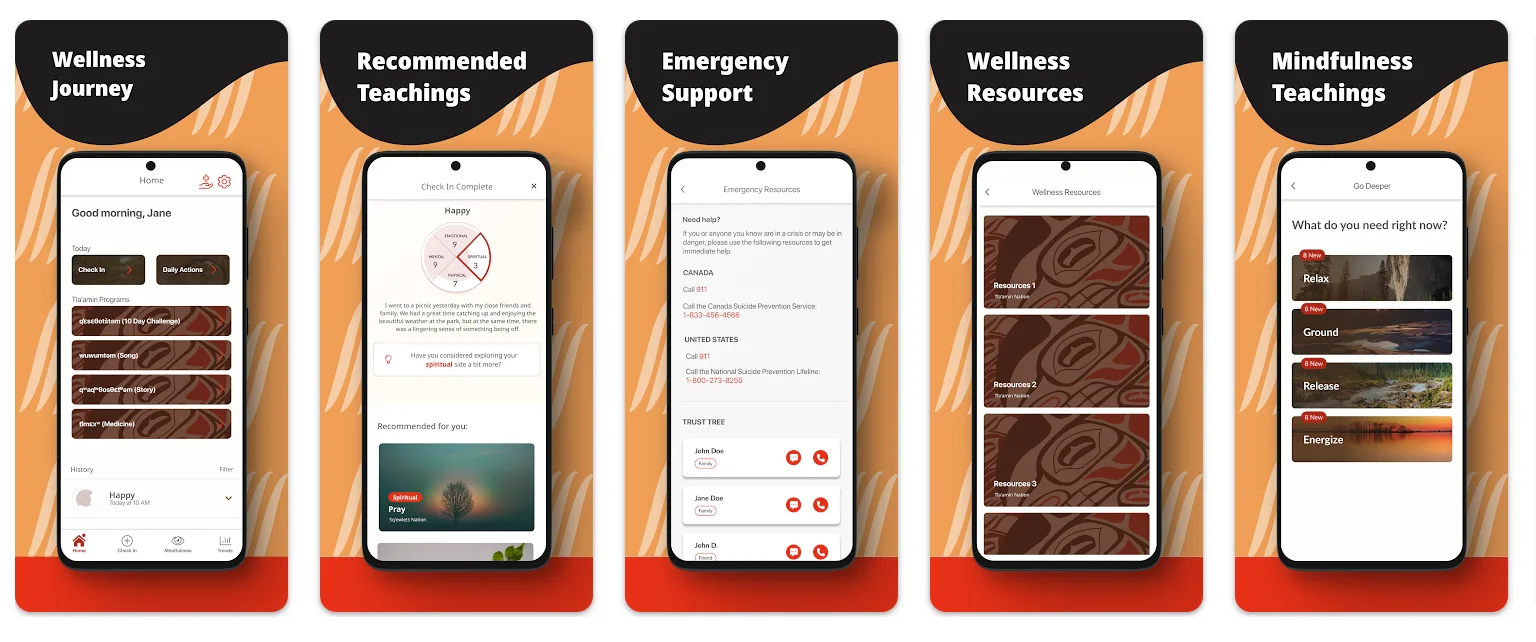 The App’s development was made possible through a partnership with Checking In. It can be downloaded through the Apple app store or Google play. Once downloaded, community members can listen to songs, stories, and teachings, participate in wellness challenges, and track their own self-reported mental wellness.