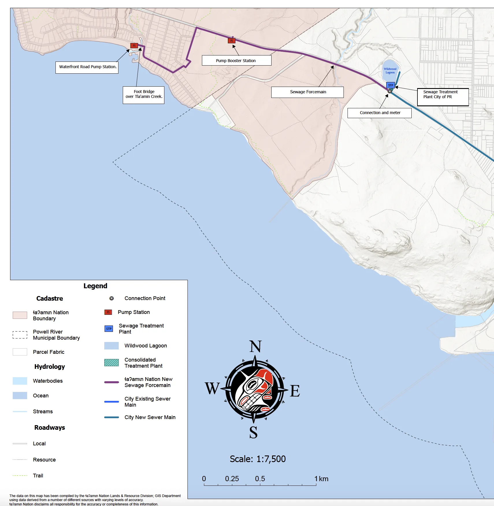 Tla’amin Nation will retain ownership and operation of its internal sewage collection system while contributing to regional treatment costs under a 50-year service agreement. The site of the former treatment plant will be restored as a public recreational space.