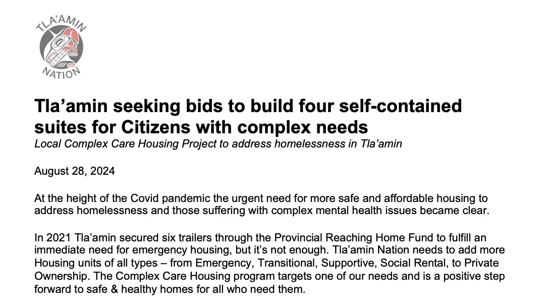 Read the Tla’amin Complex Care Housing Request for Proposals