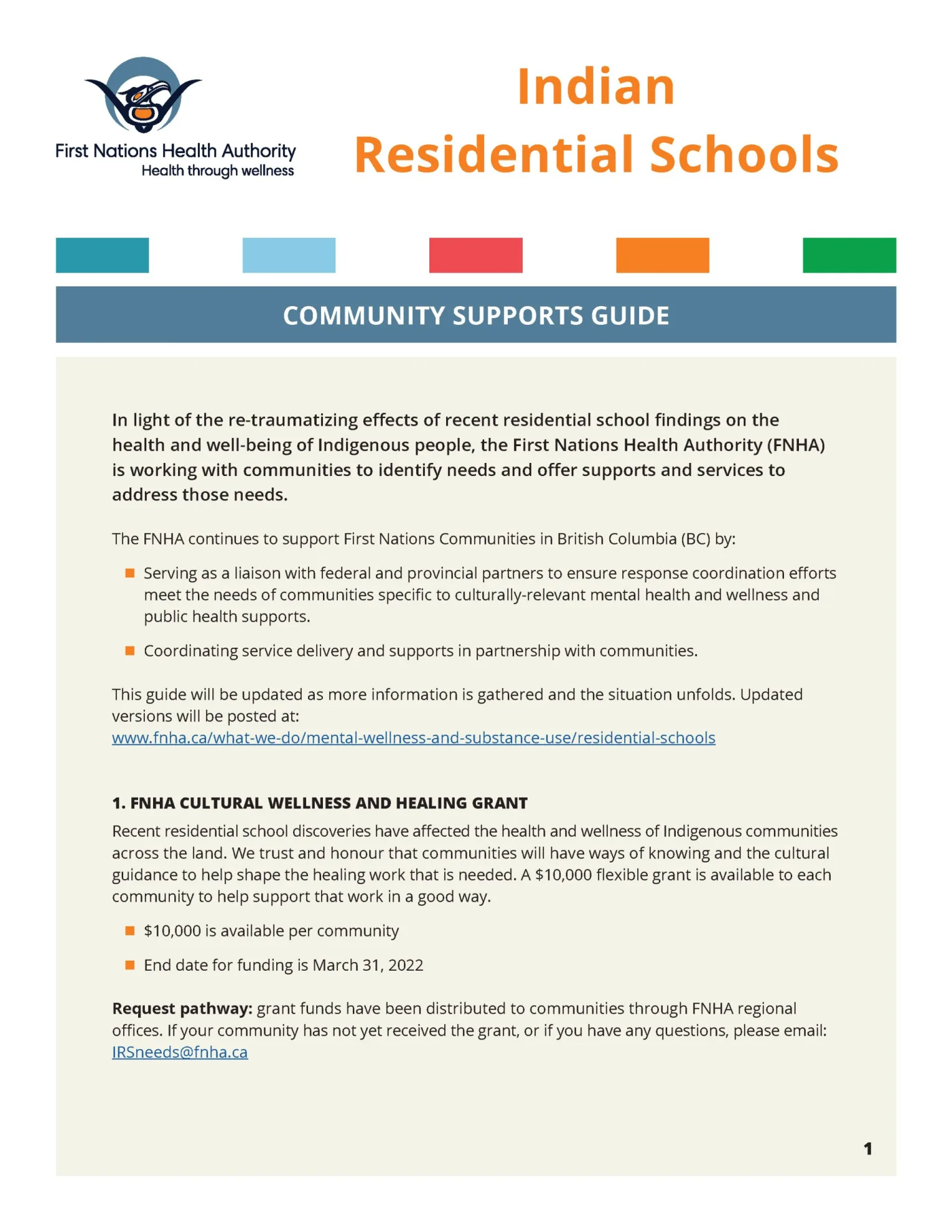 IRSneeds@fnha.ca - MENTAL HEALTH AND CULTURAL SUPPORTS